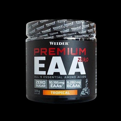 Weider Premium EAA Zero është një suplement pluhur pa sheqer, miqësor ndaj veganëve, që përmban të nëntë aminoacidet thelbësore (EAA) për ndërtimin dhe rikuperimin e muskujve. Ai përfshin një dozë të lartë të aminoacideve me zinxhir të degëzuar (BCAA) dhe është projektuar për t’u përzier me ujë për konsum.